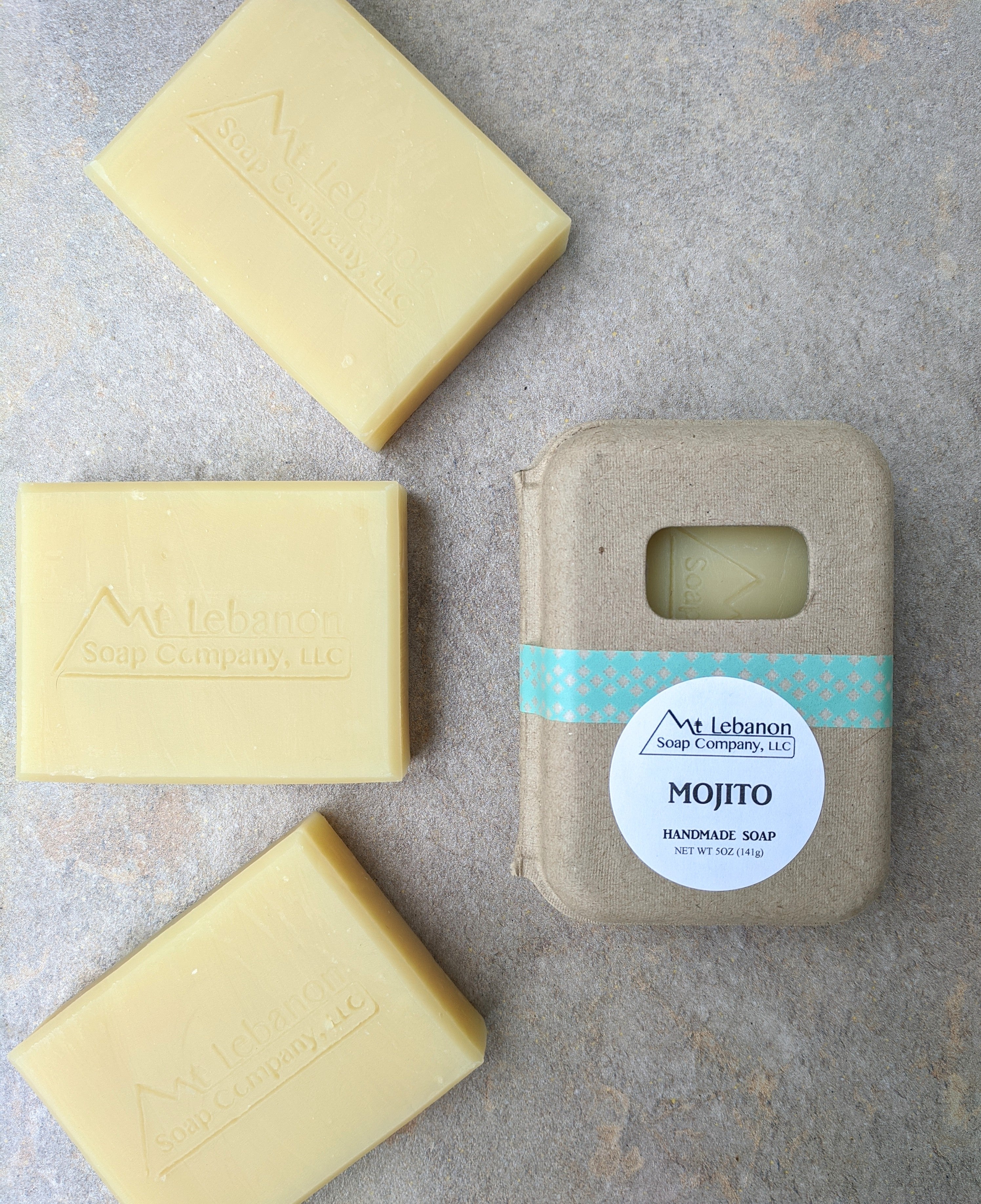 Mojito Soap has an invigorating blend of mint, lime, and a touch of sweetness. Hands down this is my favorite cold process soap we make. It's fresh, clean, and crisp making it a perfect warm weather soap. You won't be disappointed.