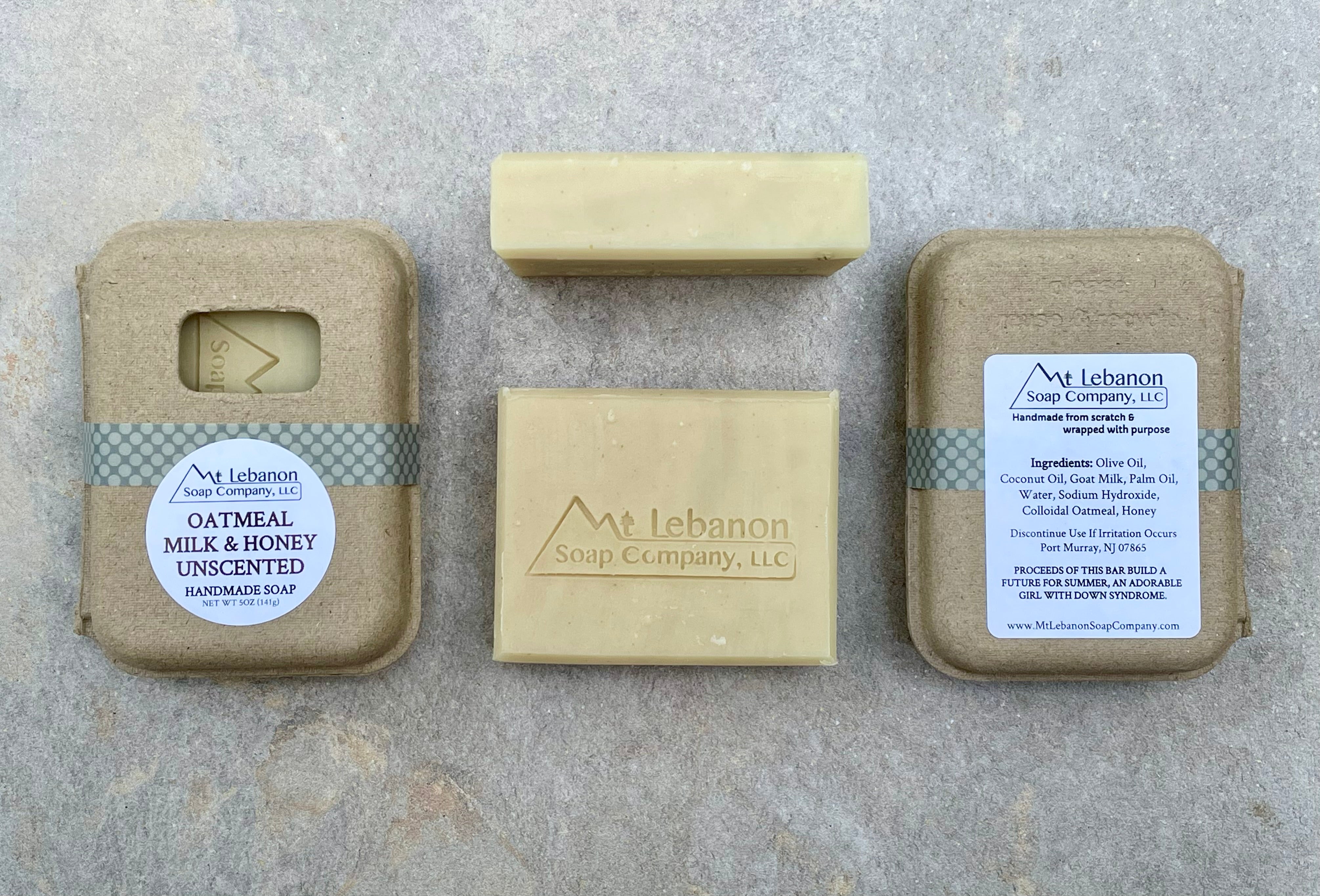 Ingredients: Olive Oil, Coconut Oil, Goat Milk, Palm Oil, Water, Sodium Hydroxide, Colloidal Oatmeal, Honey