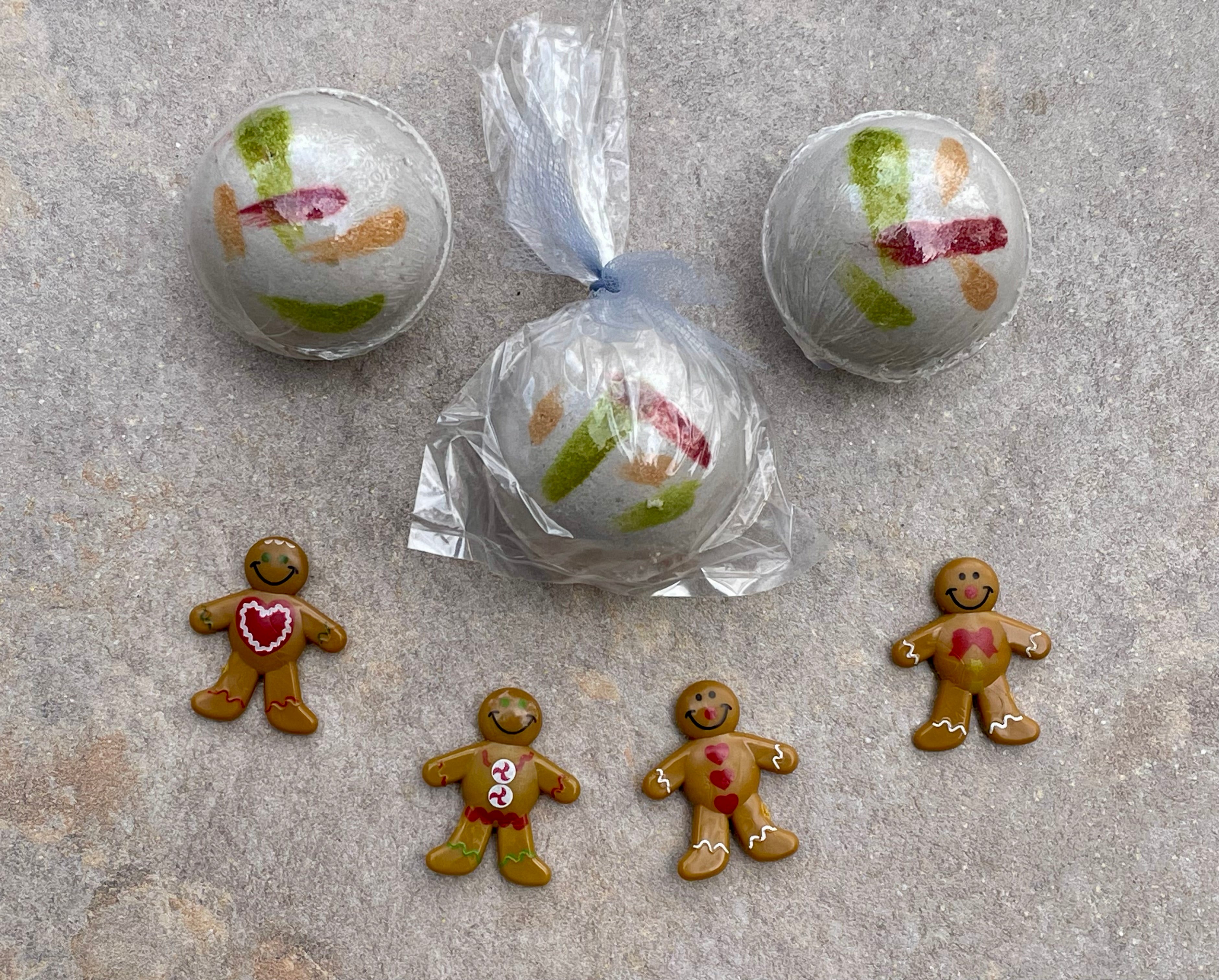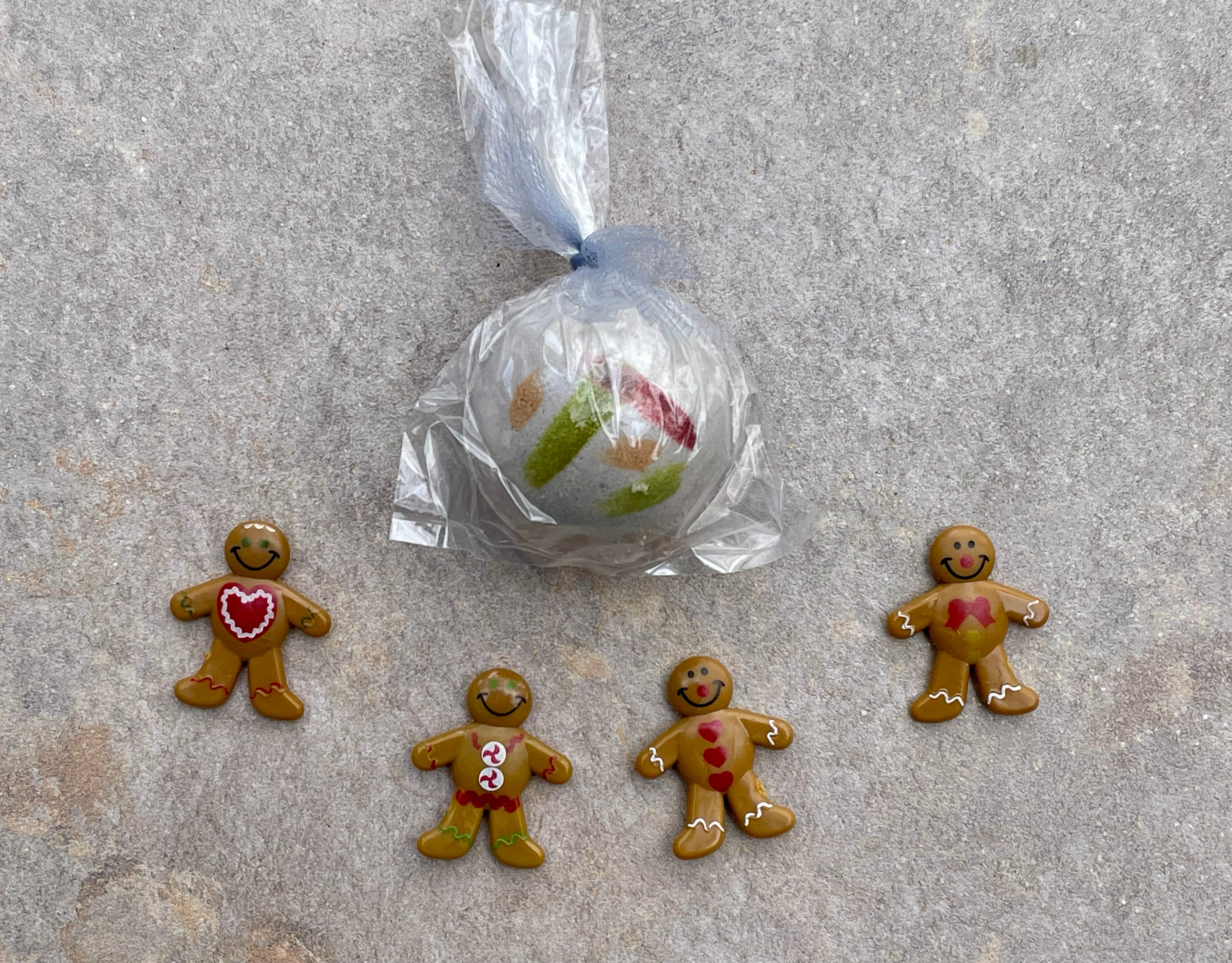 Need a unique kid gift for the holidays? These are perfect to bring in the holiday spirit. Each surprise toy bath bomb has a gingerbread man inside. Plop into a full tub of water and watch to see which one you get! The aroma is a sweet gingerbread/cookie/vanilla scent.