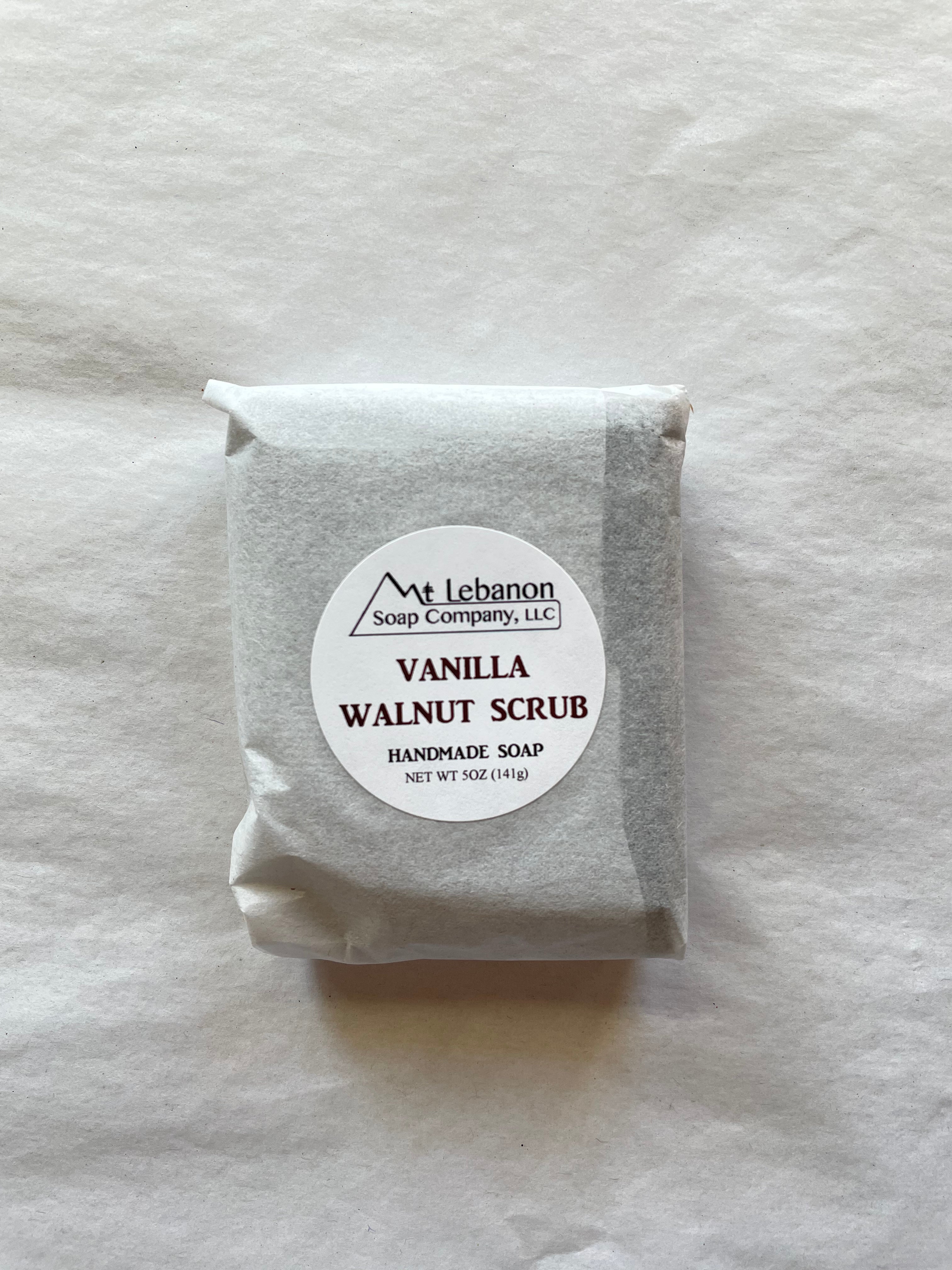 This listing is for one (1) bar of Vanilla Walnut Scrub wrapped in tissue paper.